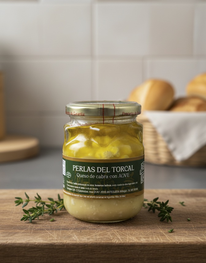 Our Perlas del Torcal is a true artisanal gem in our catalog—authentic pearls of matured goat cheese, carefully crafted and aged in extra virgin olive oil. Each pearl concentrates the intense and elegant flavor of matured goat cheese, blended with the smoothness and refined notes of the finest oil.
